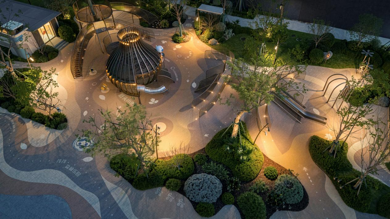 约1500㎡的“茂森林”儿童营地,将微地形草坡、雨水花园与真实的榉树、红枫融为一体。攀爬、滑梯、沙坑……18种游戏模块,让孩子们在迷迭香与薄荷的芬芳里奔跑,在仿生树屋间探秘,在陪伴中创造共同的闪光记忆。