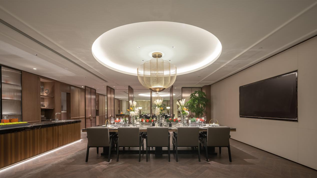 约3000㎡沉浸式会所及架空层已前置运营。私宴厅知己小聚,恒温泳池肆意畅游,健身房酣畅淋漓,预约制的管理,确保私密与尊享。同时根据业主诉求,将使用率不高的冥想室改为SPA馆,体验馆升级为KTV,真金白银的“持续增配”,无疑是逆周期的“孤勇”。