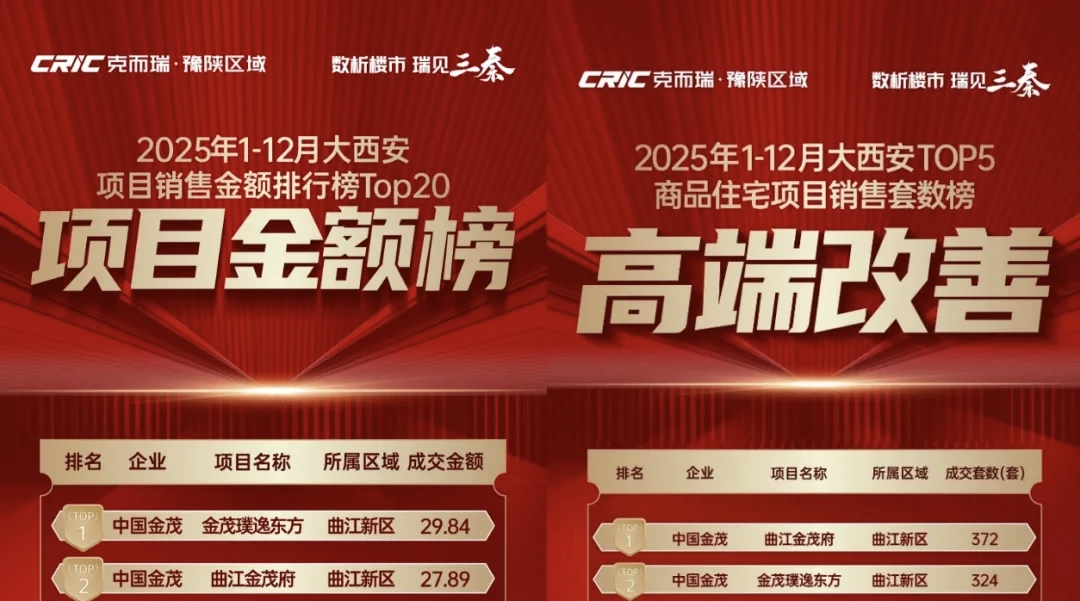 回看2025年的成绩单,更说明问题:璞逸东方以35亿销售额断层登顶西安3万+/㎡销售金额TOP1,曲江金茂府登顶同赛道套数TOP1。