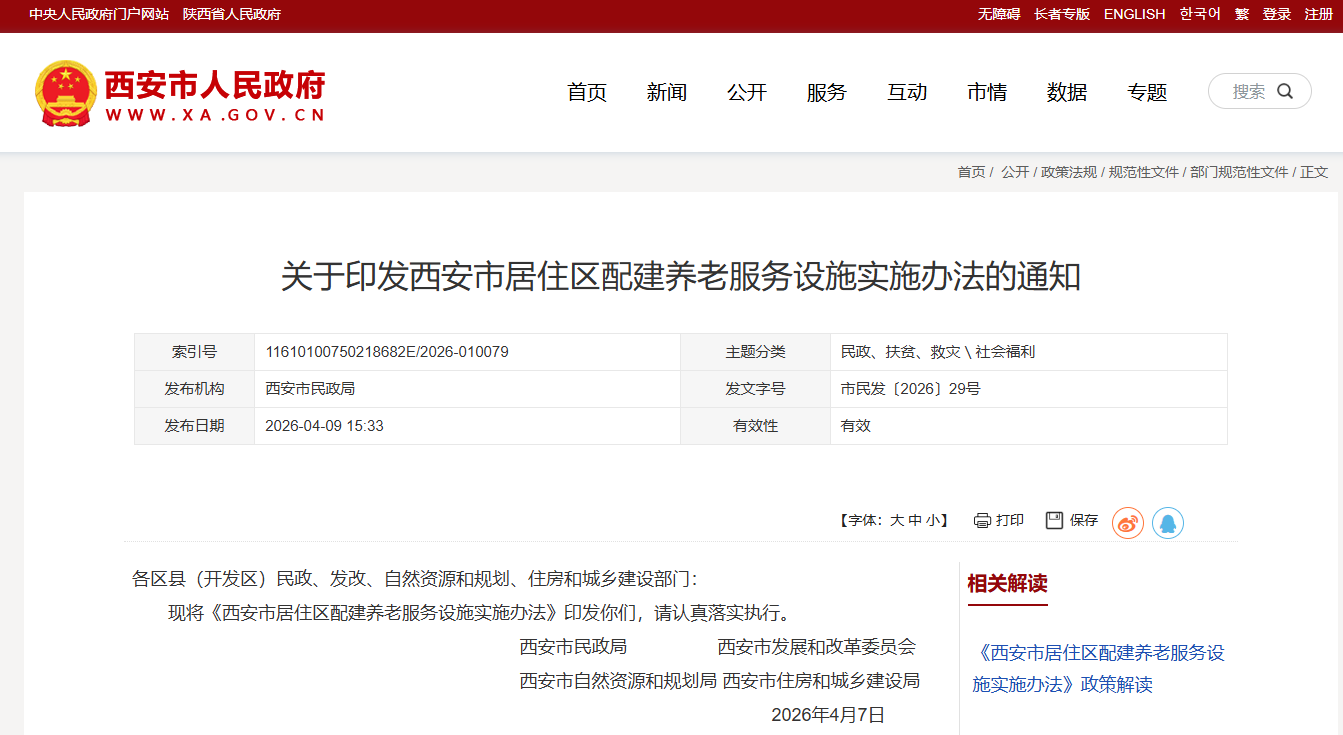 西安市居住区配建养老服务设施实施办法