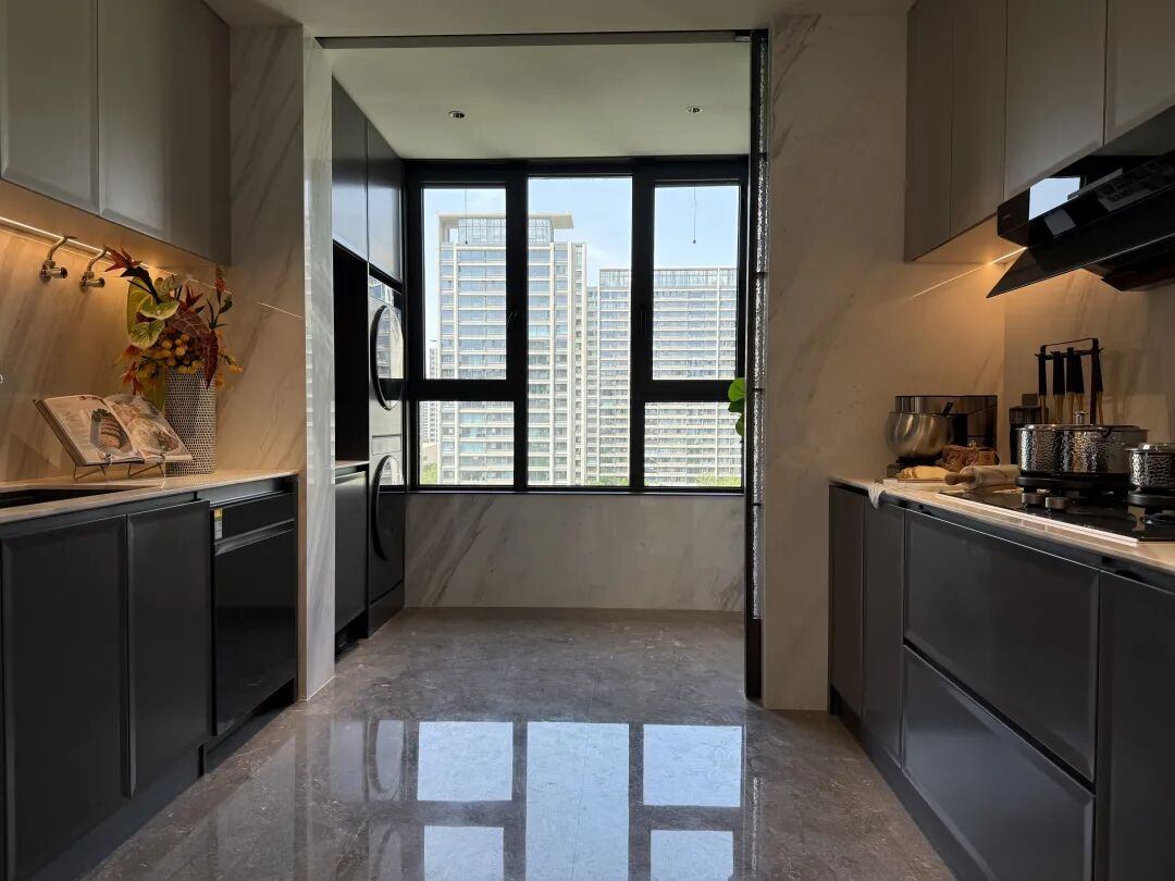 此外,超大的花园式后勤区设计,令人印象深刻。厨房与北向生活阳台联动,不仅让家政动线更为流畅,还有效提升了南北通风效率。